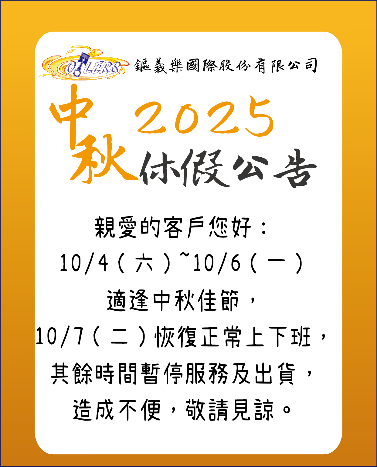 【公告】114/10/4~112/10/6為中秋節假期,鏂義樂於114/10/7繼續為您服務,造成不便,請見諒。